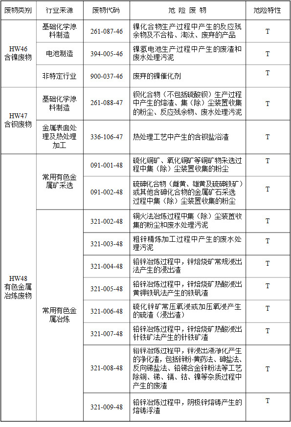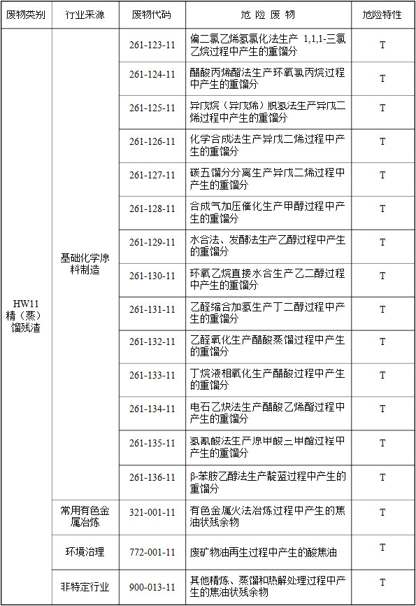 (二)行業(yè)來源,是指危險廢物的產(chǎn)生行業(yè)。