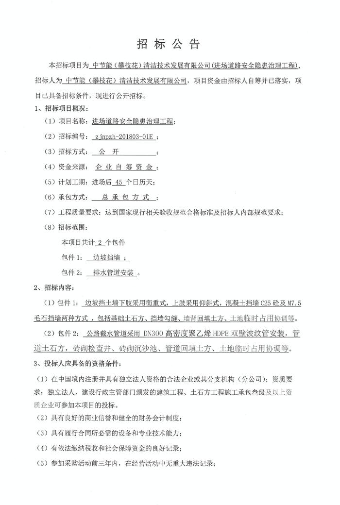 進(jìn)場道路安全隱患治理工程招標(biāo)公告